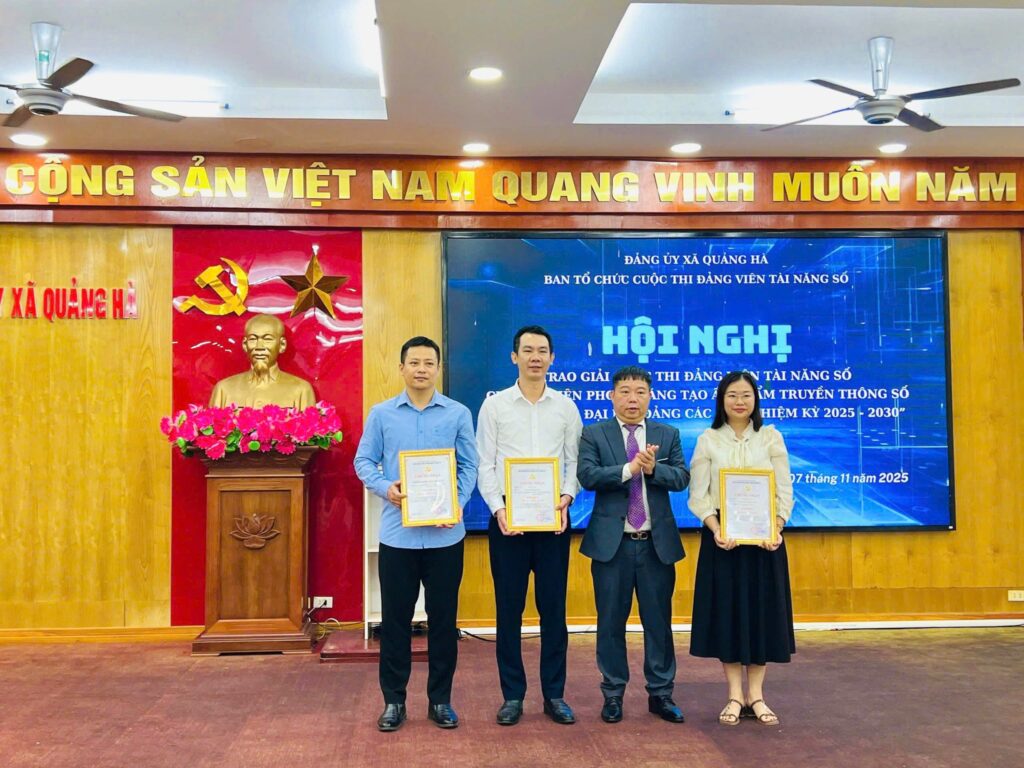 Cuộc thi “Đảng viên tài năng số” do Đảng ủy xã Quảng Hà phát động theo Kế hoạch số 23-KH/ĐU ngày 08/9/2025 của Ban Thường vụ Đảng ủy, đã thu hút sự tham gia sôi nổi của đông đảo đảng viên, chi và đảng bộ trực thuộc. Hưởng ứng cuộc thi, các đảng viên của Đảng bộ Trường TH&THCS Quảng Chính đã tích cực tham gia với nhiều thể loại video clip, infographic, tranh cổ động