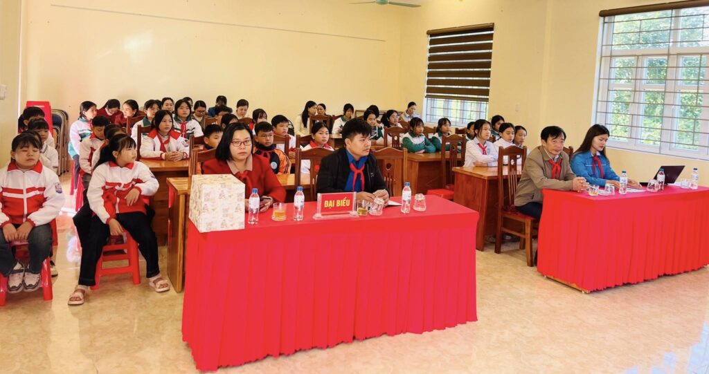 Phát biểu trong Đại hội, đồng chí Vũ Quang Tiến – Phó Bí thư Đoàn TN, Chủ tịch Hội LHTN Việt Nam xã Quảng Hà đã ghi nhận những thành tích đạt được của Liên đội trong năm học trước, đồng thời tin tưởng trong năm học 2025– 2026, Liên đội sẽ tiếp tục phát huy những mặt mạnh của mình, khắc phục những tồn tại hạn chế để đạt được mục tiêu đã đề ra