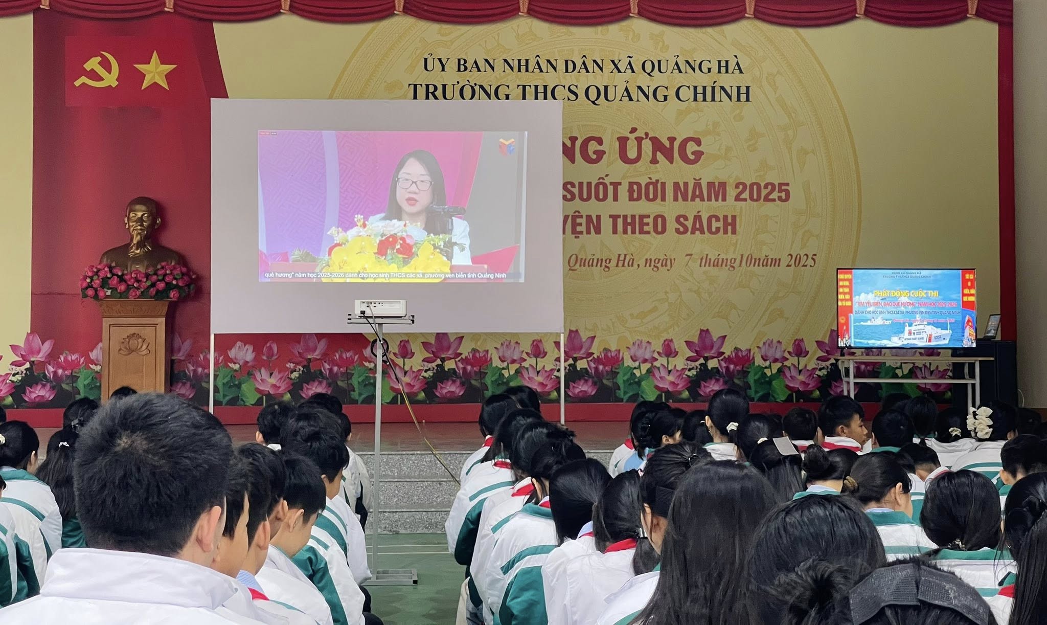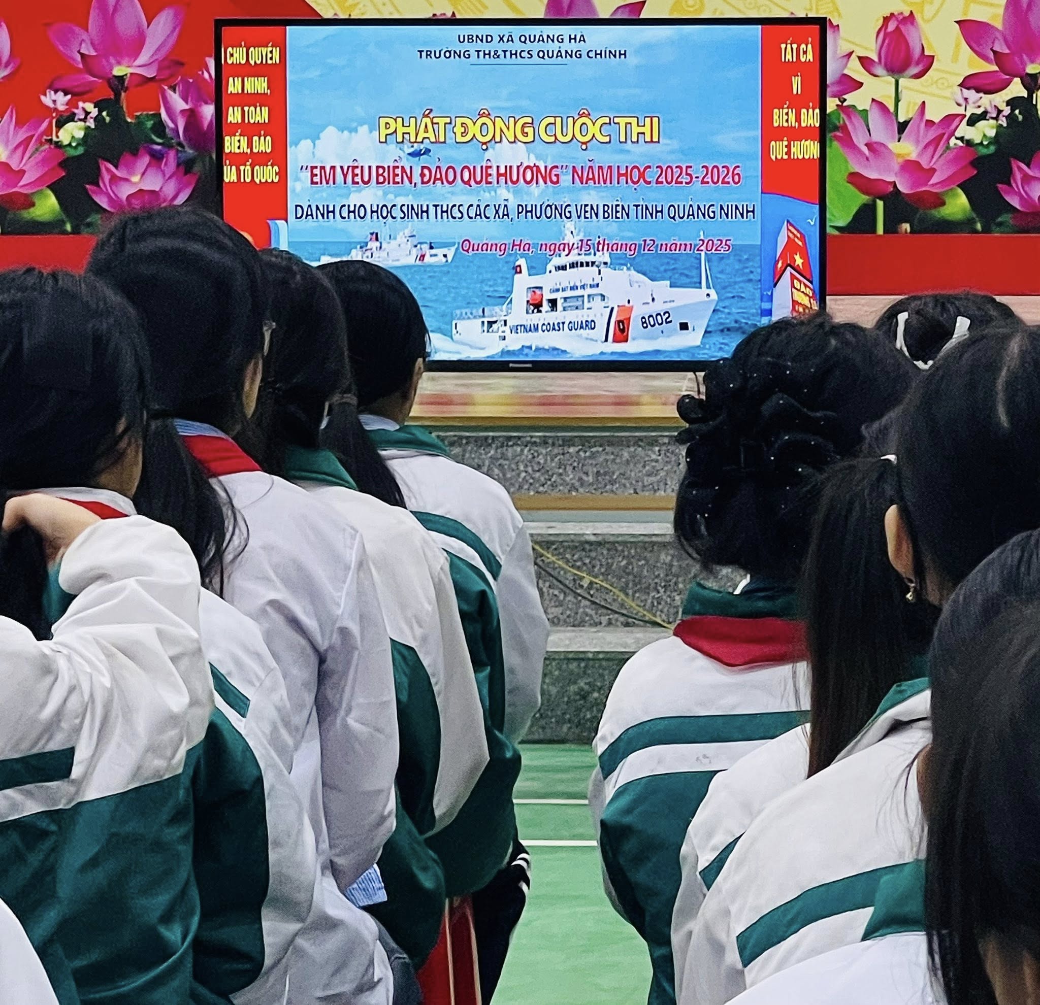 Thực hiện Kế hoạch số 3696/SGDĐT-GDPT của Sở Giáo dục và Đào tạo tỉnh Quảng Ninh, sáng ngày 15/12/2025, Trường TH&THCS Quảng Chính đã tổ chức cho học sinh khối THCS tham gia theo dõi trực tuyến Lễ phát động Cuộc thi “Em yêu biển, đảo quê hương”, kết nối từ điểm cầu Trường THCS Trọng Điểm.