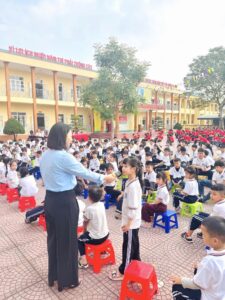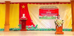 Cô Ngô Thị Châm – Bí thư Đảng bộ, Hiệu trưởng nhà trường phát biểu tại ngày hội
