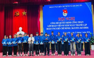 Hòa chung không khí thi đua sôi nổi của tuổi trẻ cả nước hướng tới kỷ niệm 95 năm Ngày thành lập Đoàn Thanh niên Cộng sản Hồ Chí Minh (26/03/1931 – 26/03/2026), Đoàn xã Quảng Hà đã tổ chức lễ kết nạp đoàn viên mới cho các thanh niên ưu tú trên địa bàn. Trong niềm tự hào đó, Trường TH&THCS Quảng Chính vinh dự có 9 học sinh tiêu biểu chính thức được đứng vào hàng ngũ của Đoàn.